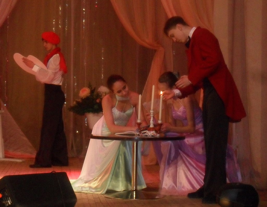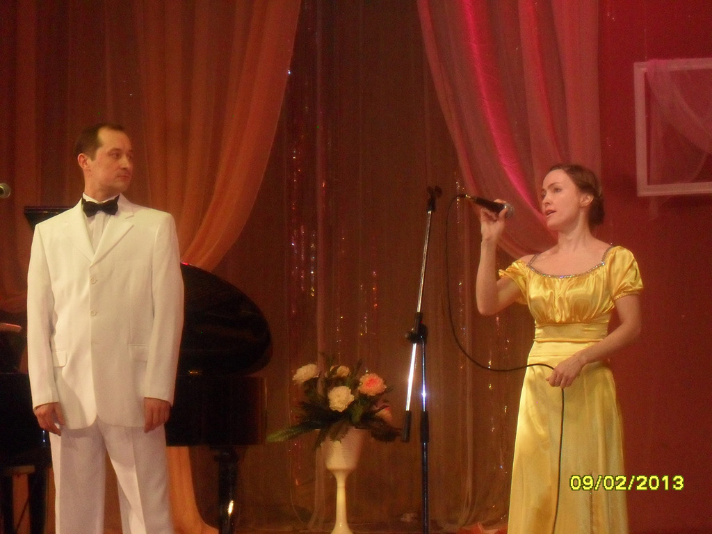 Восьмого февраля во Дворце культуры «Юность» прошёл долгожданный концерт «На хрупких клавишах души...». Вечер русского романса зрителей собрал, несмотря на некоторые опасения организаторов концерта. За исключением первого ряда и пары рядов «галёрки» — зал был полон. С самого начала всё настраивало на романтический лад: и вальсирующие пары, и оформление сцены. Рояль, подсвечник на столике, вуалевые накидки на паре стульев, мольберт — создавали уютную атмосферу.