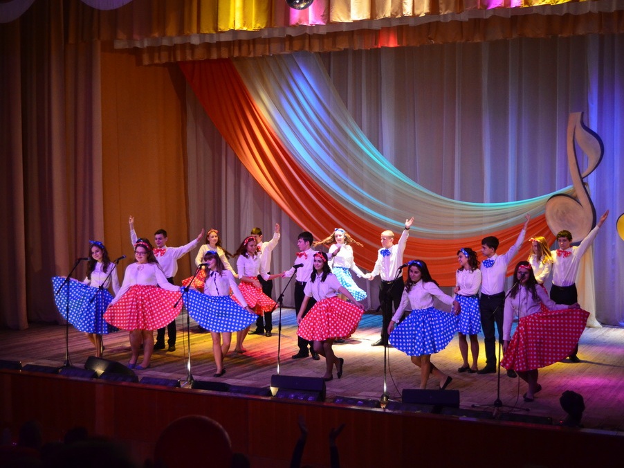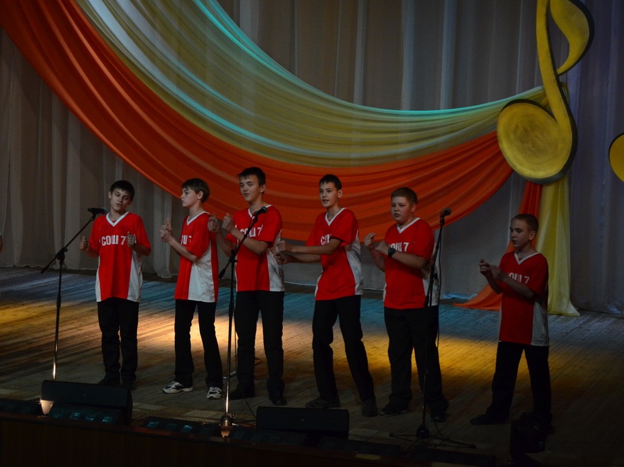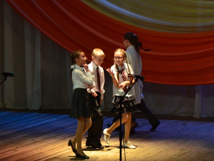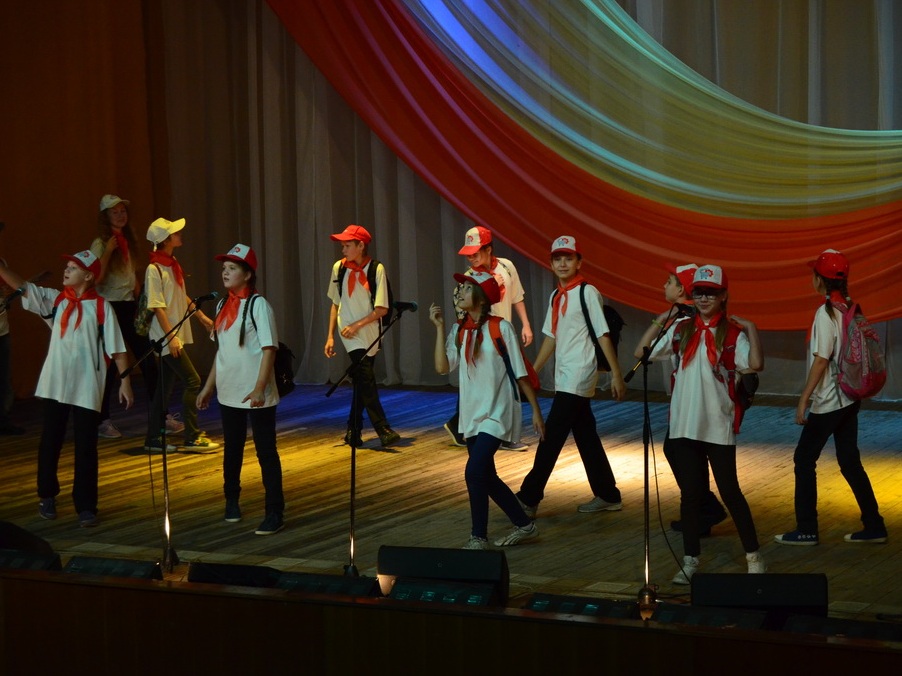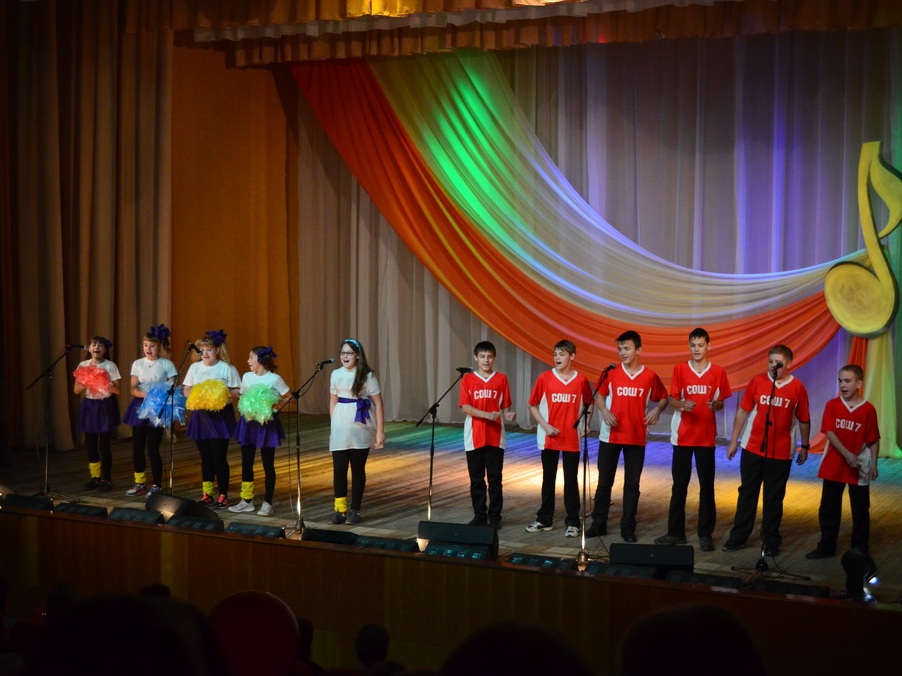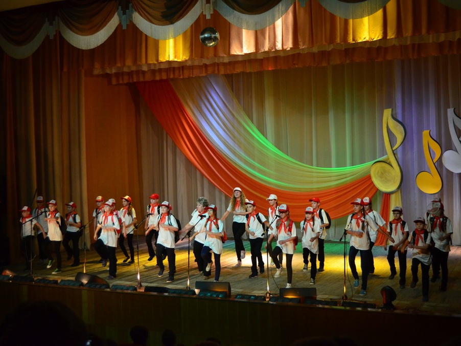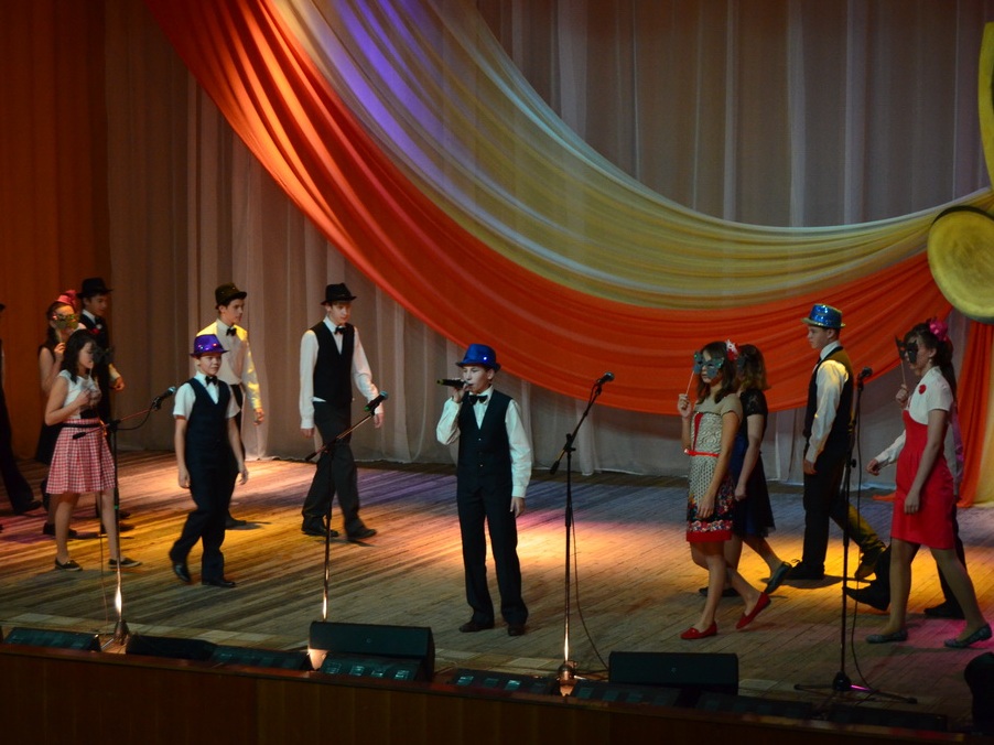 Темой конкурса стали песни из советских и российских фильмов и мультфильмов – ребята пели песни из фильмов Гайдая, из сериалов и детских фильмов, песни, хорошо известные всем сидящим в зале. Каждое выступление сопровождалось небольшими сценками, которые подготовили участники конкурса и их педагоги и родители: ребята «жгли костры» на сцене, танцевали, одевались в различные яркие костюмы…