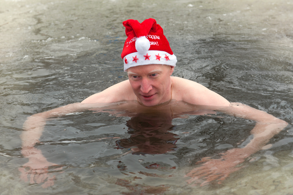 "Моржи" Саянска вместе с Дедом Морозом встретили Новый 2016 год
