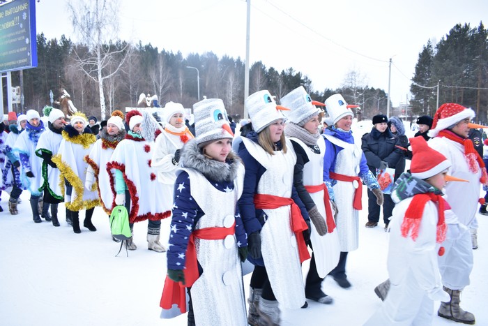 Шествие снеговиков растянулось длинной колонной по улице. Его участники − представители общественных организаций, предприятий и учреждений города, семьи. Все коллективы получили дипломы и денежные призы. Специальные призы мэра Олег Боровский вручил семьям: самая многочисленная − семья Луниных получила детский квадроцикл-электромобиль, семья Бутрик − электрический самовар.