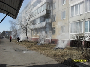 В микрорайоне Олимпийский сотрудники ООО «Управляющая компания Искра» второй день тщательно убирают растительный мусор. Собранный в кучи мусор сжигают.
