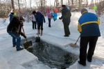 Для этого нужно всего лишь с хорошим настроением и решительным неистребимом желанием на героический поступок, к 13 часам в субботу или воскресенье приехать, дойти пешком или бегом добраться до проруби.