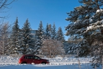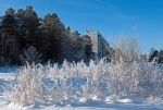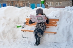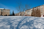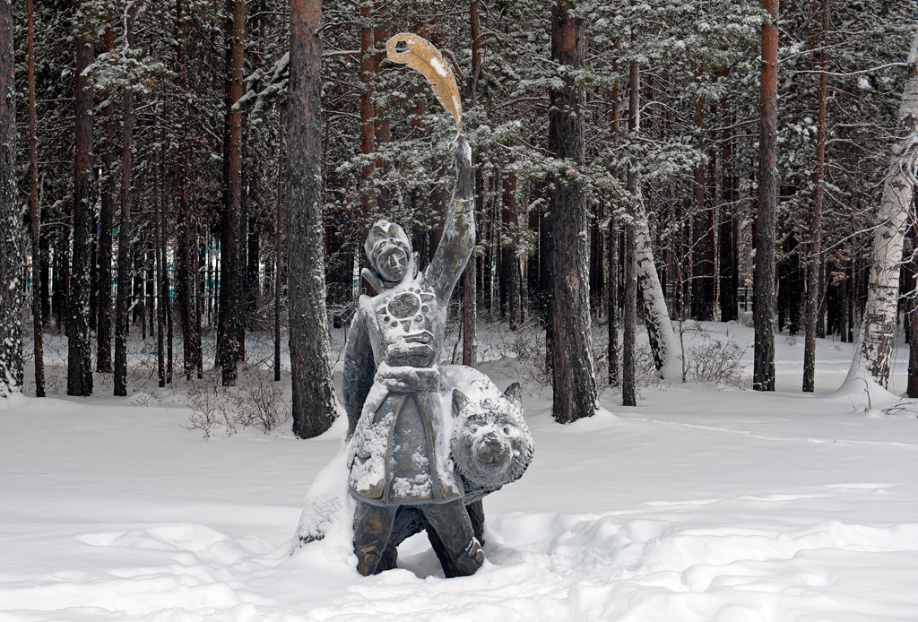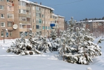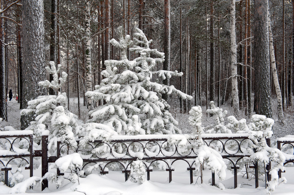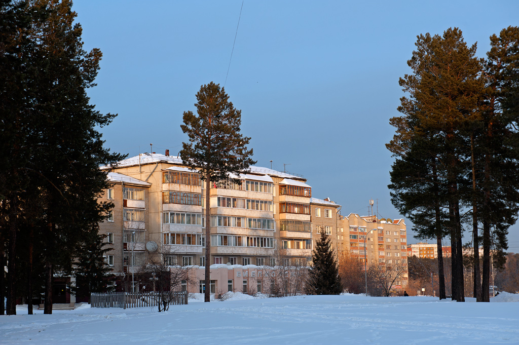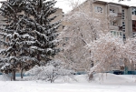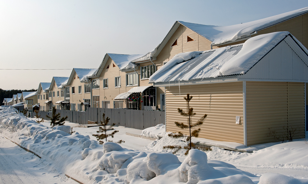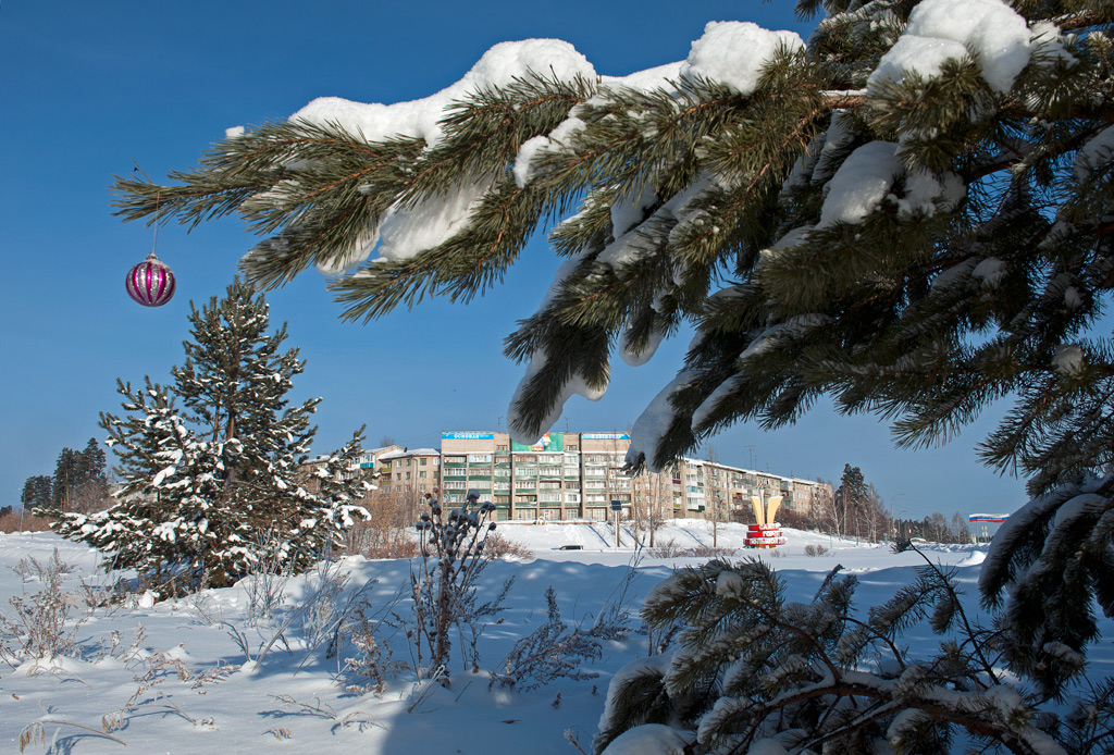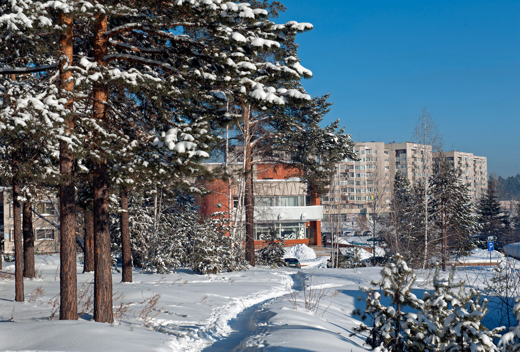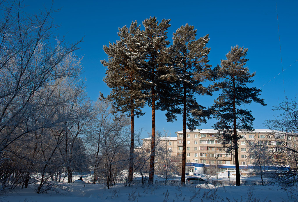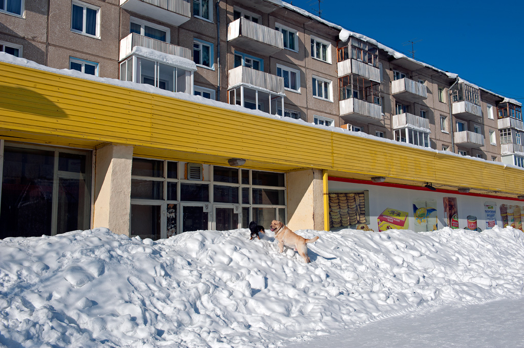Белый город, белый снег, белый дом и человек.